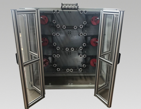 本机为SKC-36-4S数控缠绕机配套专用设备,主要用途是把钢丝从出厂时的大工字轮分解到缠绕机专用多线轴上。张力均匀可调,操作简便,PLC全电子控制。全封闭式结构,安全无噪音,并实现了断丝停机,自动计米,及设定长度自动停机的功能,可以一人多机的操作,自动化程度高。